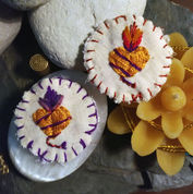 Les broches à piquer partout, blousons, gilet, sac ou à poser comme un totem sur un autel sacré. Elles ont pour attache une épingle à nourrice cousues pour une meilleure tenue. Ajouter +ou- 3€ de frais de port pour la France.
